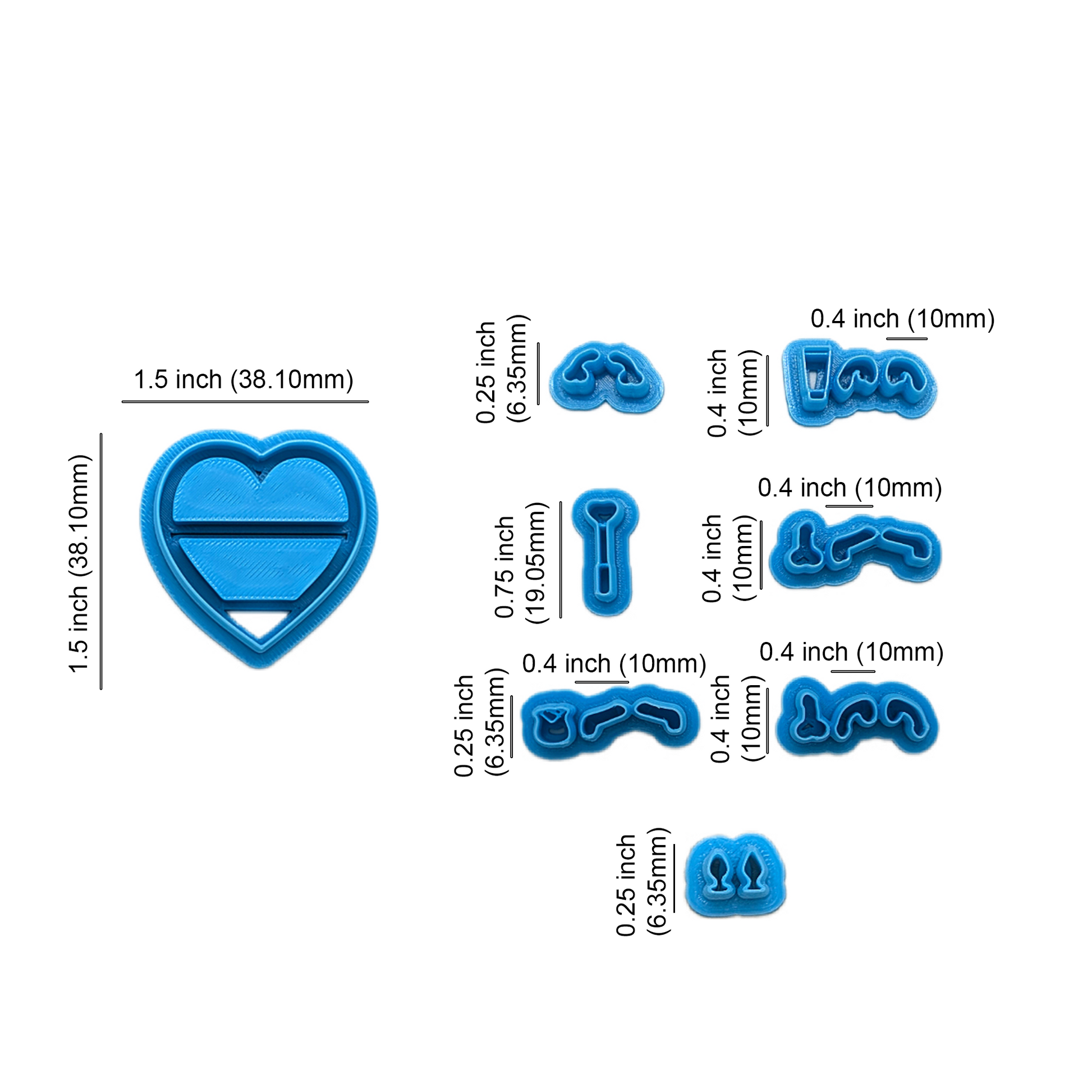 Naughty Nook Heart Cutter Set with Miniature Adult-Theme Toy Cutter Options: Idea for Ceramics, Pottery & Polymer Clay Jewelry